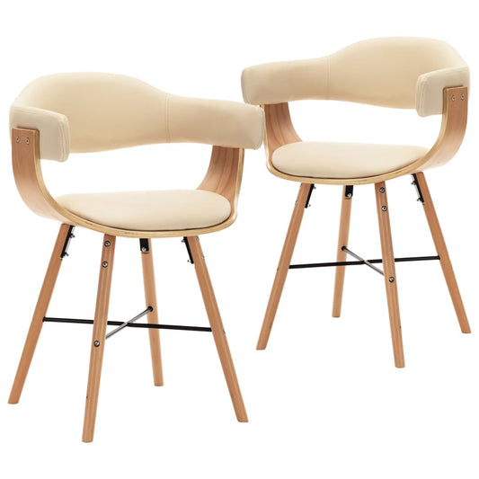 Esszimmerstühle 2 Stk. Cremeweiß Kunstleder und Bugholz