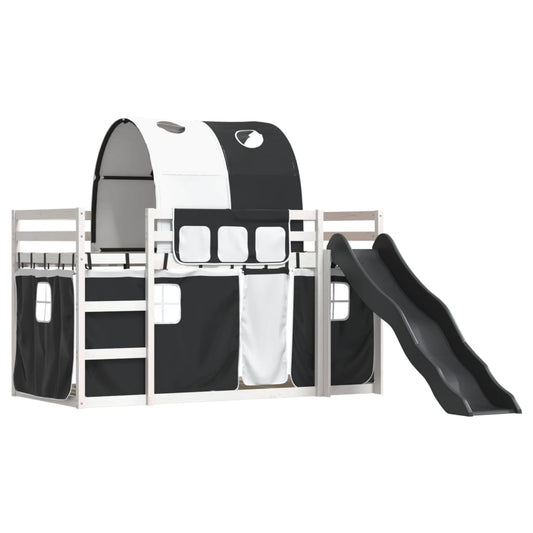 Etagenbett mit Rutsche und Gardinen Weiß und Schwarz 90x190 cm