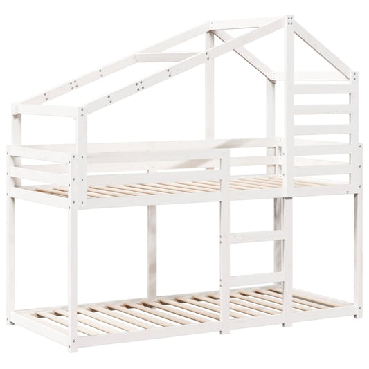 Etagenbett mit Dach Weiß 75x190 cm Massivholz Kiefer