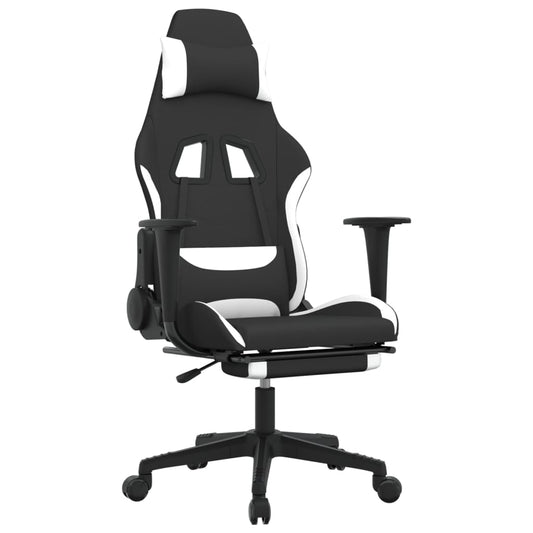 Gaming-Stuhl mit Massage & Fußstütze Schwarz und Weiß Stoff