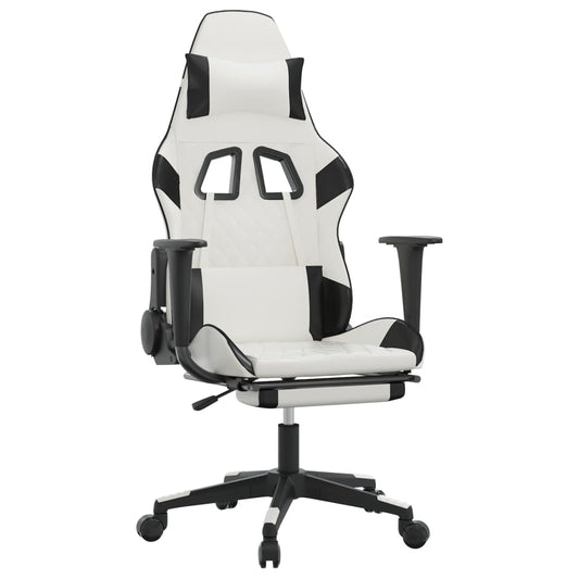 Gaming-Stuhl mit Massage & Fußstütze Weiß & Schwarz Kunstleder