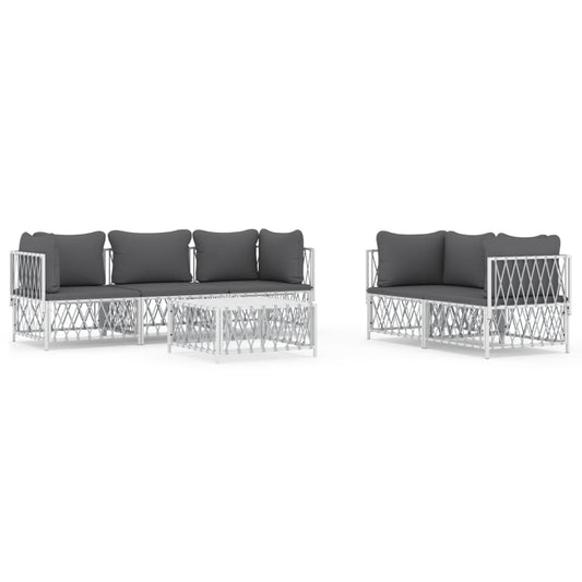 6-tlg. Garten-Lounge-Set mit Kissen Weiß Stahl