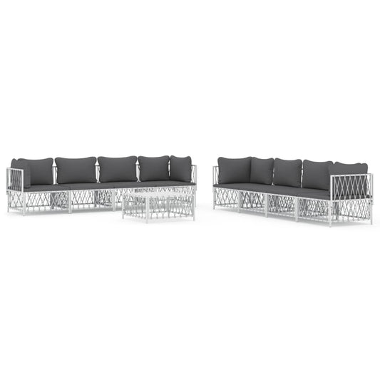 9-tlg. Garten-Lounge-Set mit Kissen Weiß Stahl