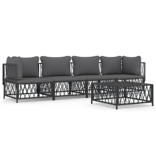 5-tlg. Garten-Lounge-Set mit Kissen Anthrazit Stahl