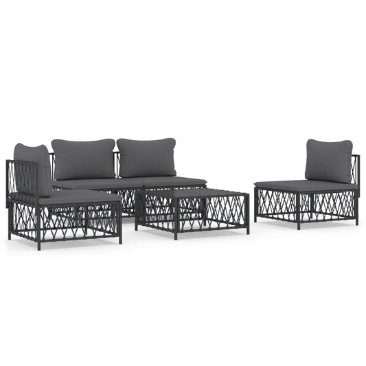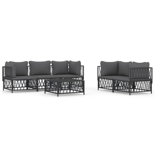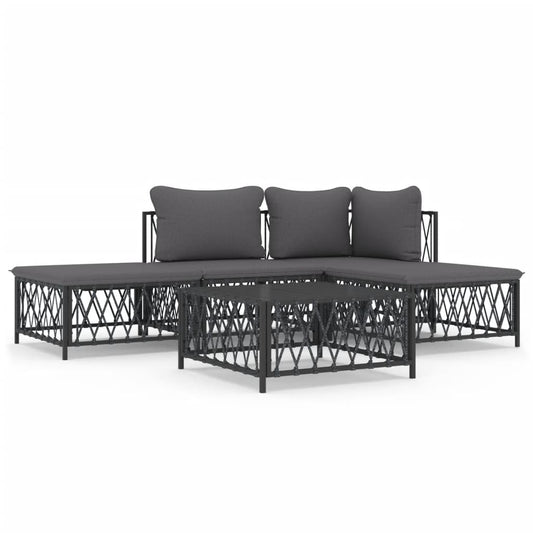 5-tlg. Garten-Lounge-Set mit Kissen Anthrazit Stahl