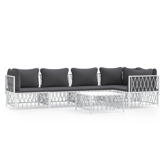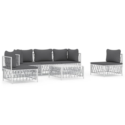 6-tlg. Garten-Lounge-Set mit Kissen Weiß Stahl