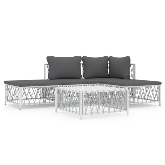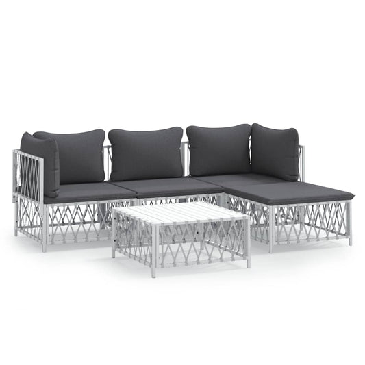 5-tlg. Garten-Lounge-Set mit Kissen Weiß Stahl