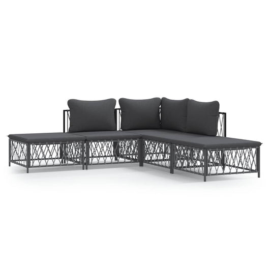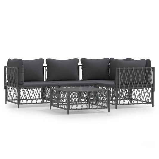 5-tlg. Garten-Lounge-Set mit Kissen Anthrazit Stahl