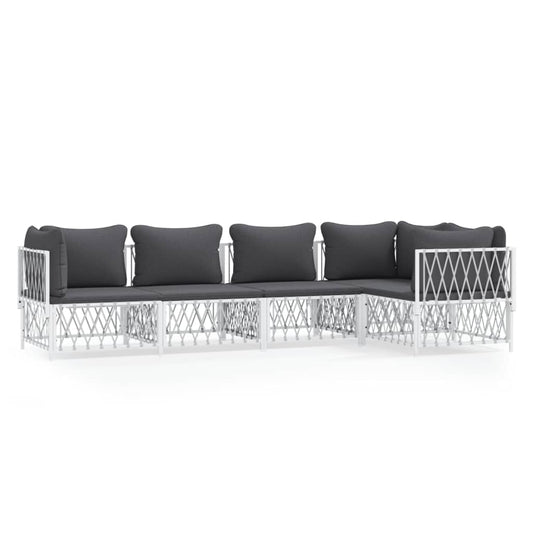 5-tlg. Garten-Lounge-Set mit Kissen Weiß Stahl