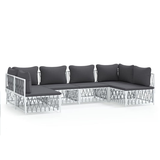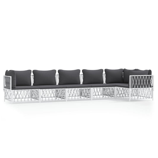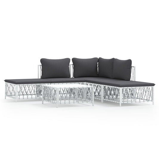 6-tlg. Garten-Lounge-Set mit Kissen Weiß Stahl