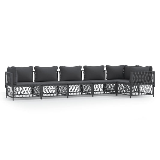 6-tlg. Garten-Lounge-Set mit Kissen Anthrazit Stahl