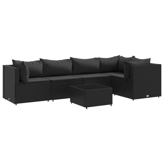 6-tlg. Garten-Lounge-Set mit Kissen Schwarz Poly Rattan