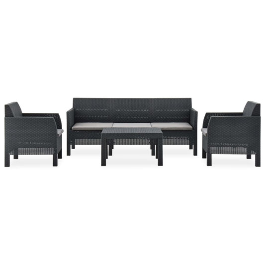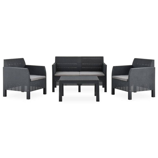 4-tlg. Garten-Lounge-Set mit Kissen PP Rattan Anthrazit