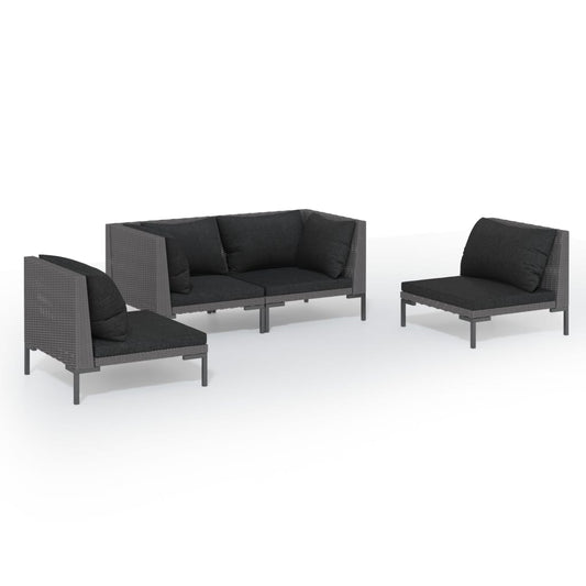 4-tlg. Garten-Lounge-Set mit Kissen Poly Rattan Dunkelgrau