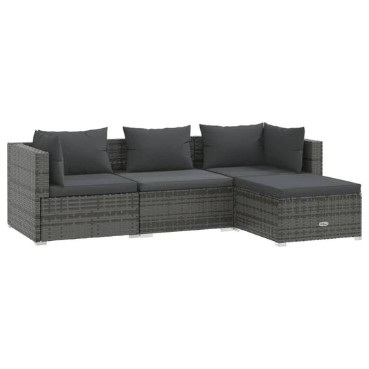 4-tlg. Garten-Lounge-Set mit Kissen Poly Rattan Grau
