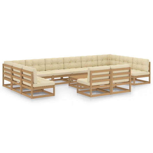 13-tlg. Garten-Lounge-Set Weiß Kiefer Massivholz