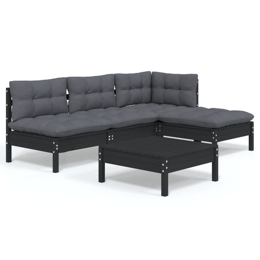 5-tlg. Garten-Lounge-Set mit Creme Kissen Kiefernholz