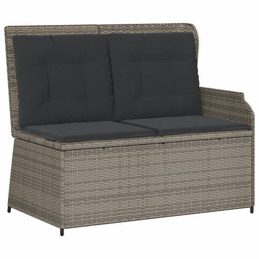 Gartenbank Verstellbar mit Kissen Grau Poly Rattan