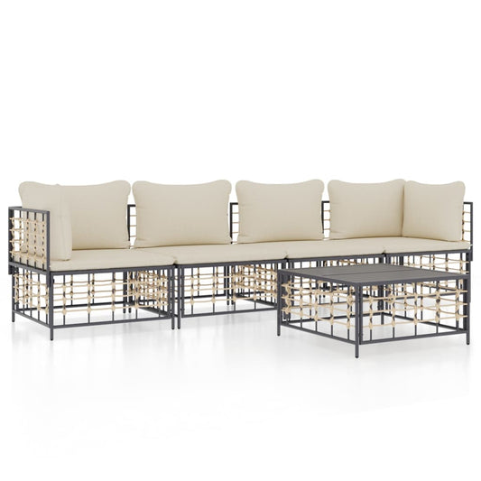 5-tlg. Garten-Lounge-Set mit Kissen Anthrazit Poly Rattan