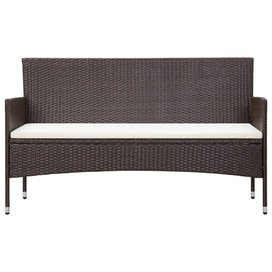 Gartensofa 3-Sitzer mit Kissen Braun Poly Rattan