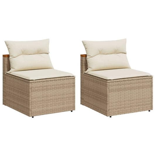 Gartensofas ohne Armlehnen mit Kissen 2 Stk. Beige Poly Rattan