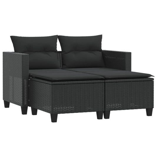 Gartensofa 2-Sitzer mit Hockern Schwarz Poly Rattan