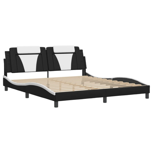 Bettgestell mit Kopfteil Schwarz und Weiß 180x200 cm Kunstleder