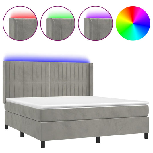 Boxspringbett mit Matratze & LED Hellgrau 180x200 cm Samt