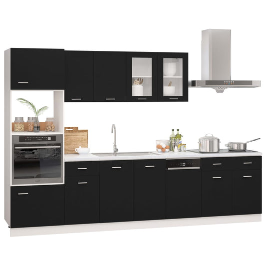 8-tlg. Küchenzeile Schwarz Holzwerkstoff