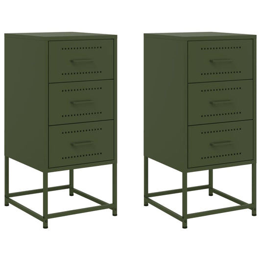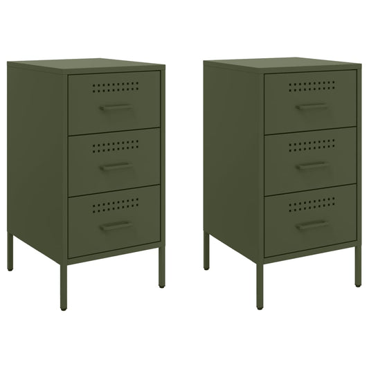 Nachttische 2 Stk. Olivgrün 36x39x60,5 cm Stahl