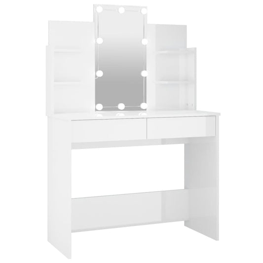 Schminktisch mit LED Hochglanz-Weiß 96x40x142 cm