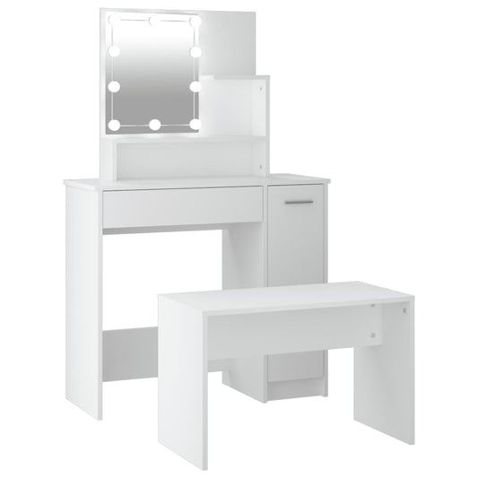 Schminktisch-Set mit LED Weiß Holzwerkstoff