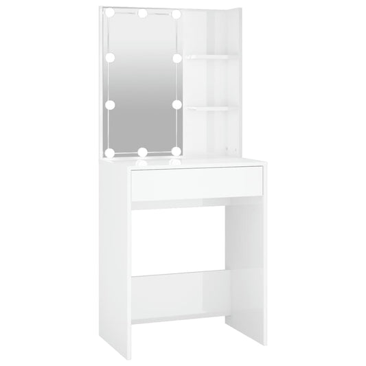 Dressing table with LED lights high gloss white 96x40x142 cm
