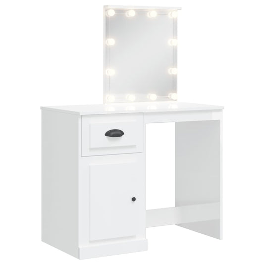 Dressing table with LED lights high gloss white 90x42x132.5 cm