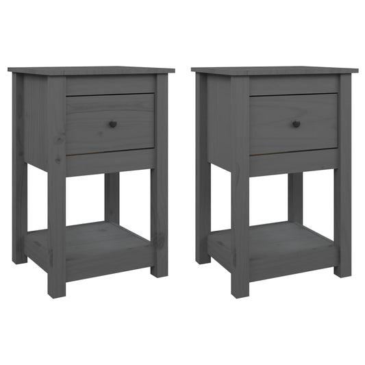 Nachttische 2 Stk. Grau 40x35x61,5 cm Massivholz Kiefer
