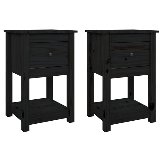 Nachttische 2 Stk. Schwarz 40x35x61,5 cm Massivholz Kiefer