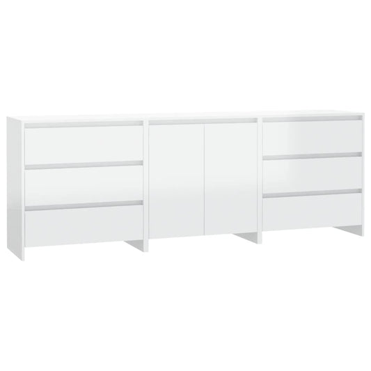 3-tlg. Sideboard Hochglanz-Weiß Holzwerkstoff