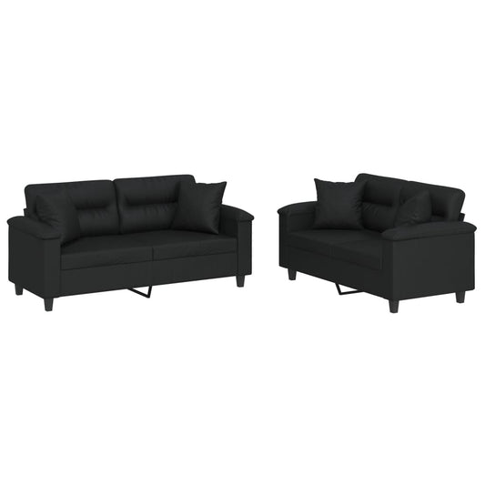 2-tlg. Sofagarnitur mit Kissen Schwarz Kunstleder