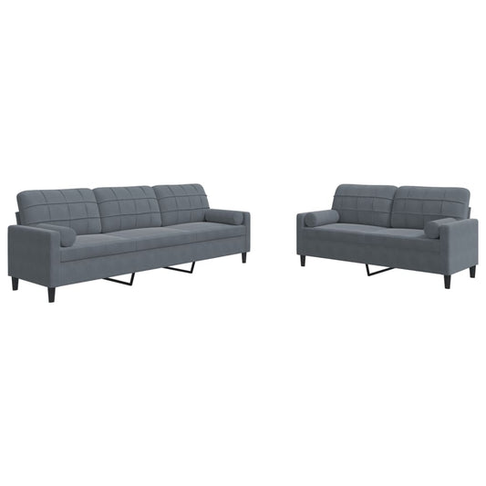 2-tlg. Sofagarnitur mit Kissen und Nackenrollen Dunkelgrau Samt