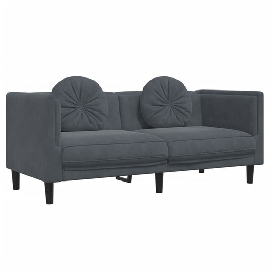 Sofa mit Kissen 2-Sitzer Dunkelgrau Samt