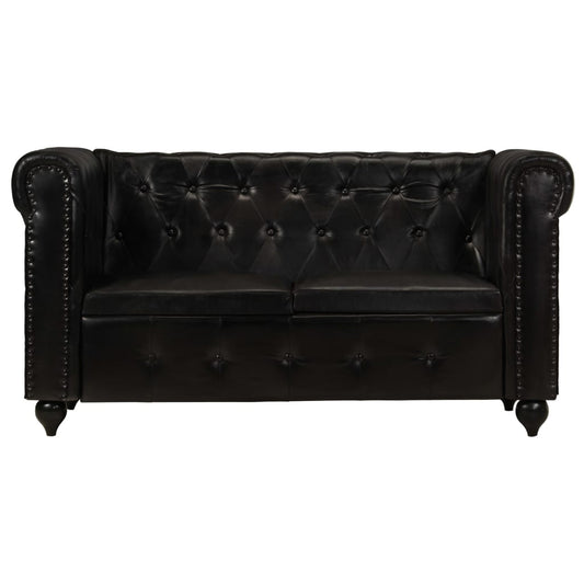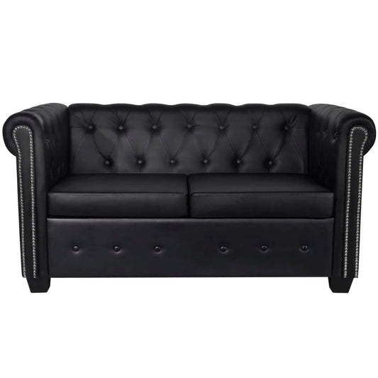 Chesterfield-Sofa 2-Sitzer Kunstleder Schwarz