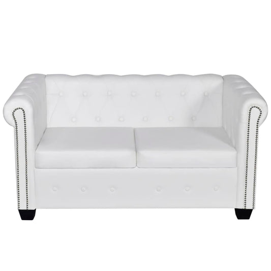 Chesterfield-Sofa 2-Sitzer Kunstleder Weiß