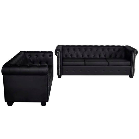 Chesterfield sofas 2-seater and 3-seater faux leather black