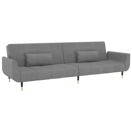 Sofa bed 2-seater with 2 cushions light grey velvet