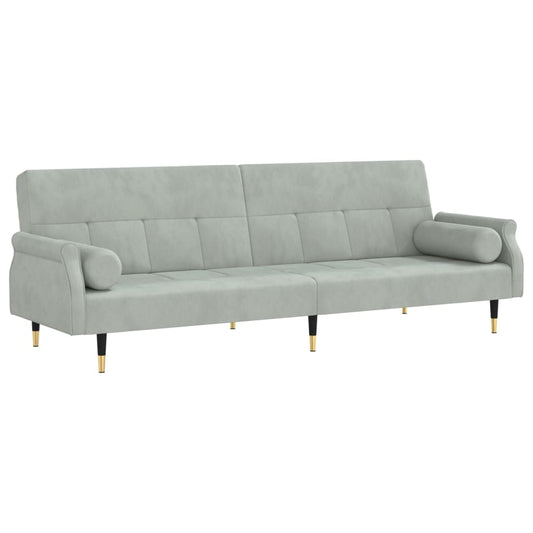 Sofa bed with cushions light grey velvet