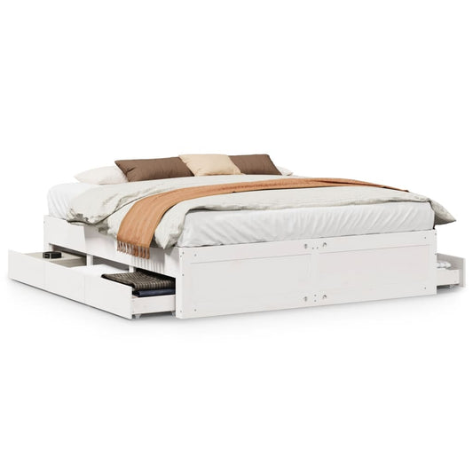 Massivholzbett ohne Matratze mit Schubladen Weiß 200x200 cm
