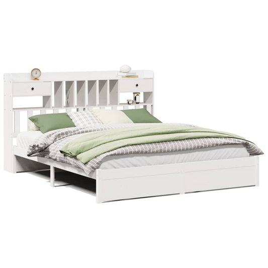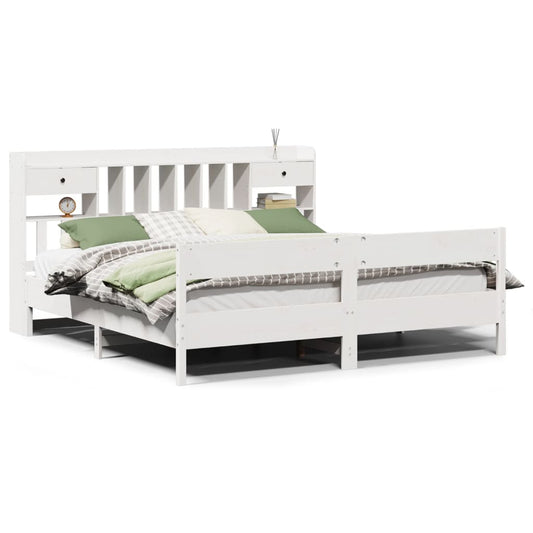 Massivholzbett mit Regal ohne Matratze Weiß 200x200 cm Kiefer