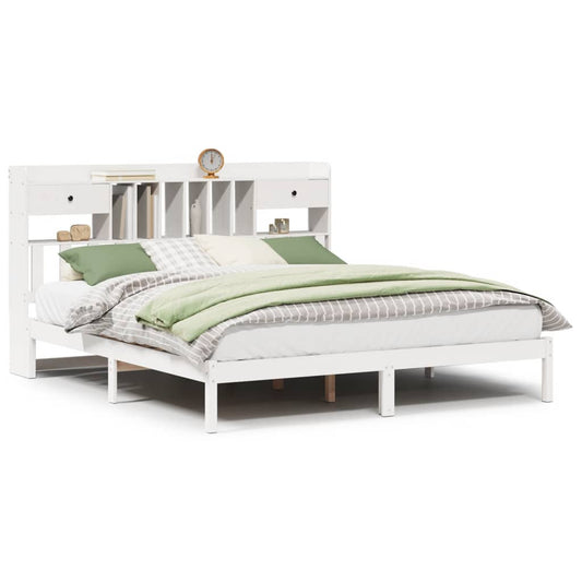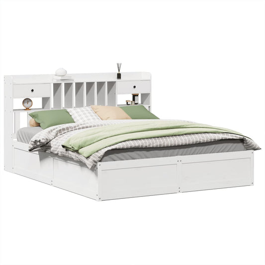 Massivholzbett mit Regal ohne Matratze Weiß 200x200 cm Kiefer