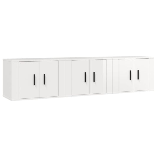TV-Wandschränke 3 Stk. Hochglanz-Weiß 100x34,5x40 cm
