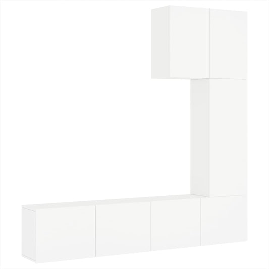 7-tlg. Wohnwand mit LED-Beleuchtung Weiß Holzwerkstoff